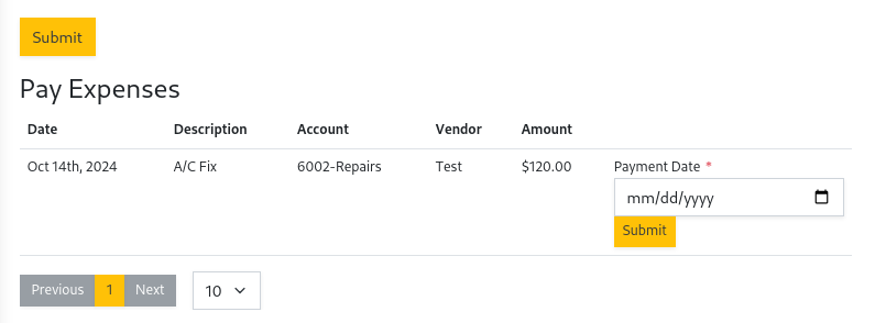Expensesunder theAccountingmenu. - Enter the date, expense account, description, amount, and vendor. If this is a new vendor, select