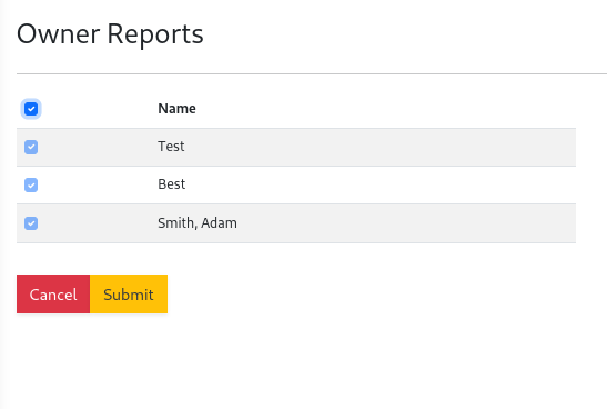 Owner Reportsunder theOwnersmenu. - Select the report type, name, and fill in additional attributes. Select